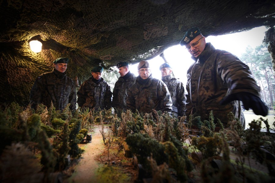 Senior officers of the Polish defence forces visit an exhibition at a military base in Bydgoszcz, Poland, on March 9, 2019. (Xinhua/Jaap Arriens)