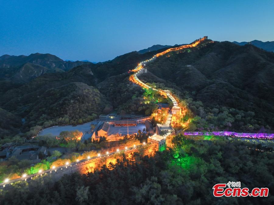 Lights illuminate the Badaling section of the Great Wall in Beijing, April 25, 2023. (Photo: China News Service/Jia Tianyong)