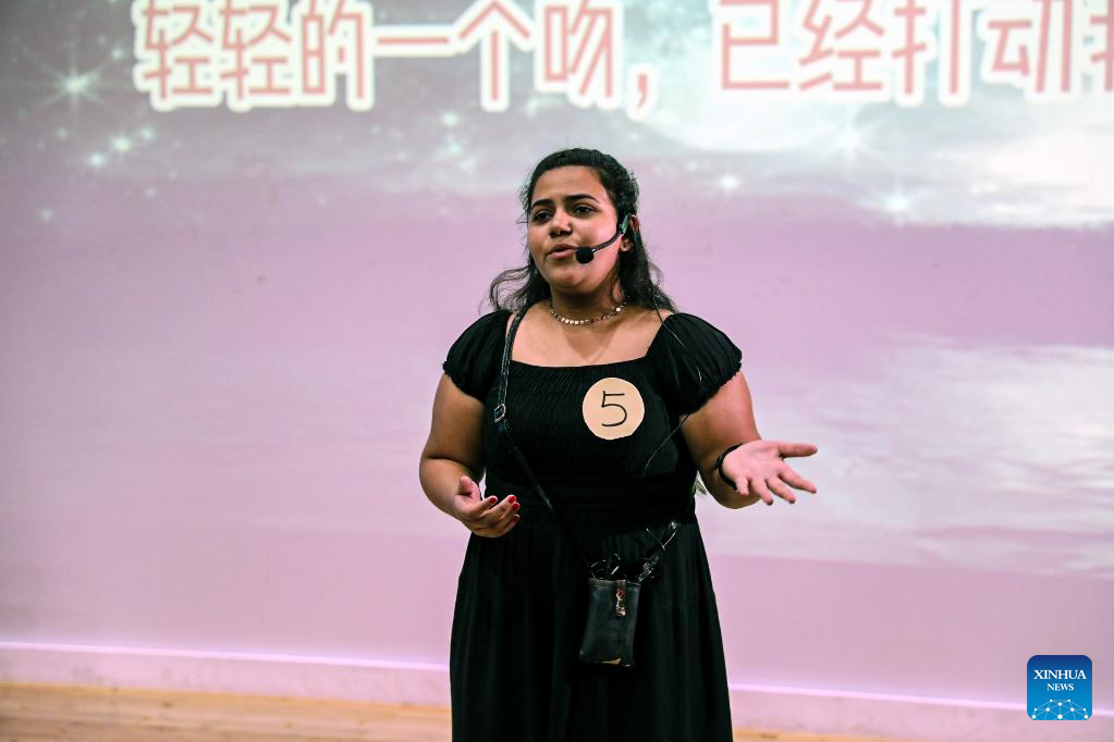 The players, all teenage students from the Egyptian Chinese Friendship School in Cairo, competed in self-introduction, delivering keynote speeches and showcasing a traditional Chinese art form, such as singing, dancing, or painting.