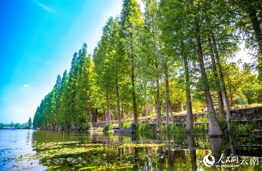 Photo taken on April 23 shows Dabokou waters of Dianchi Lake in Kunming, southwest China's Yunnan Province. (People's Daily Online/Hu Zunhui)