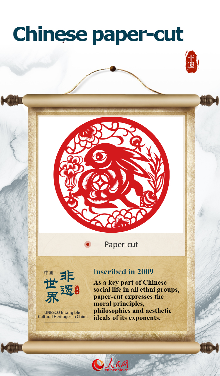 The item "Chinese paper-cut" was inscribed on UNESCO's Representative List of the Intangible Cultural Heritage of Humanity in 2009.