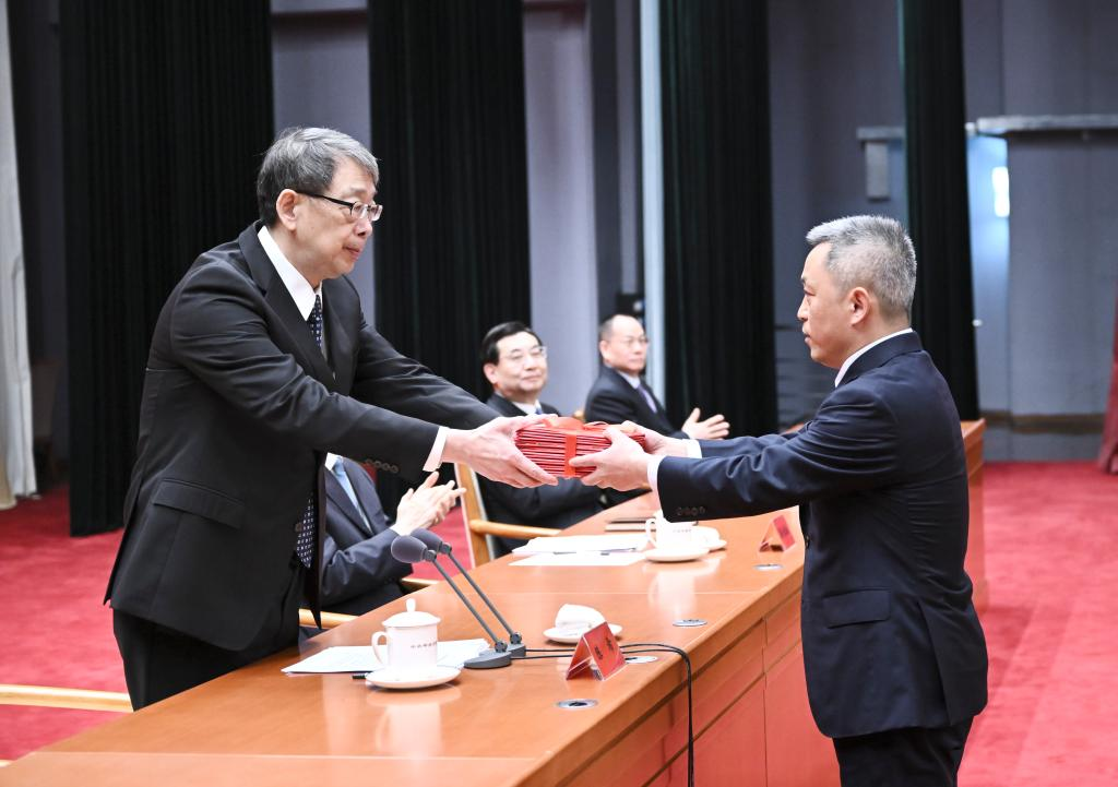 Chen Xi, president of the Party School of the Communist Party of China (CPC) Central Committee (National Academy of Governance), attends a graduation ceremony for the 2023 spring semester and presents certificates to the first batch of graduates for the semester on April 28, 2023. (Xinhua/Yan Yan)