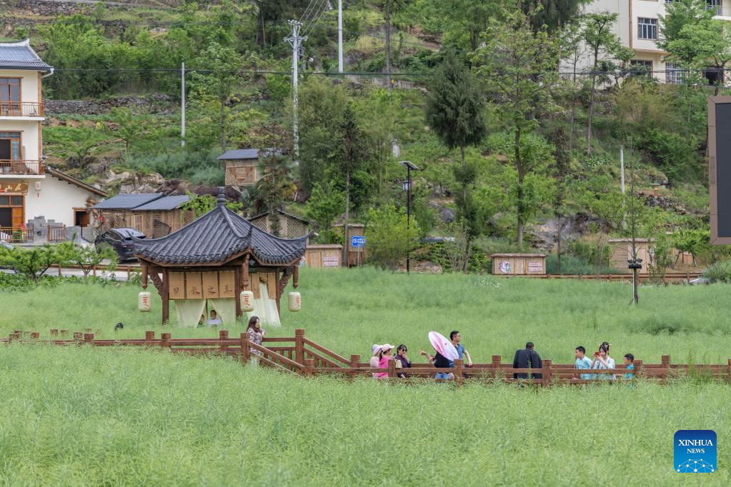 Tourists visit Longchi Village in Wuxi County, southwest China's Chongqing, May 2, 2023. China is witnessing a travel boom during this year's five-day May Day holiday. (Xinhua/Huang Wei)