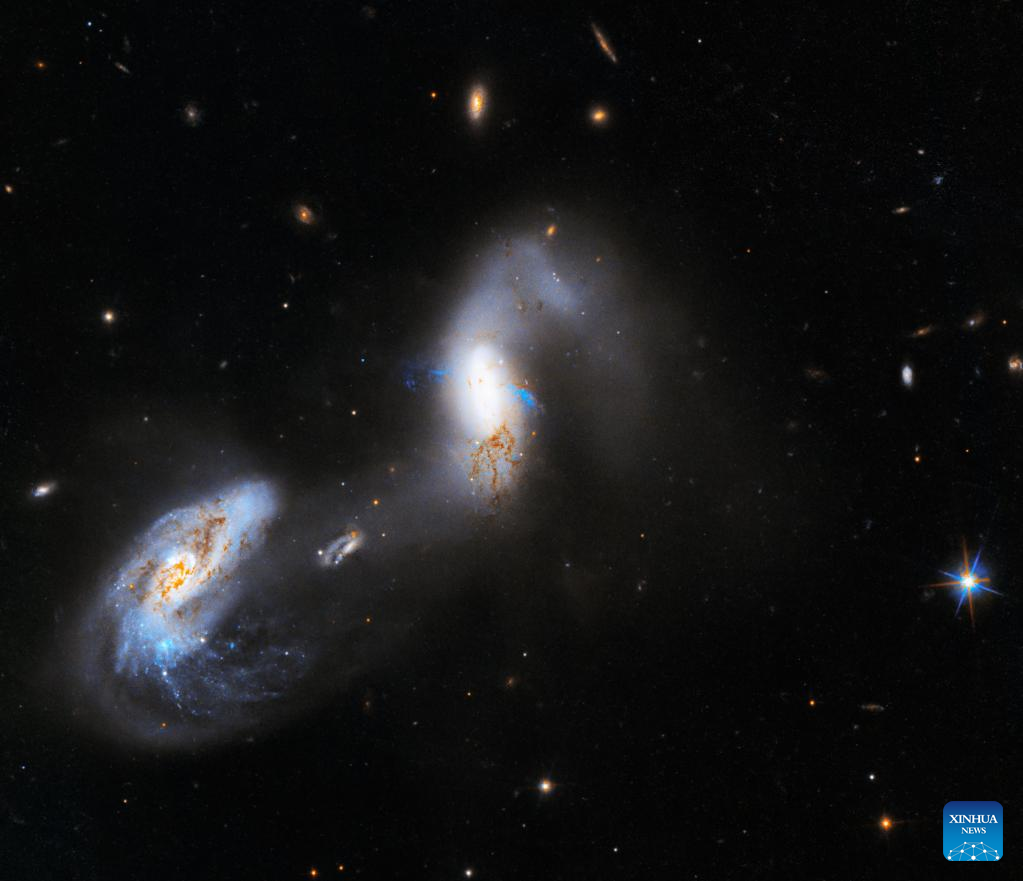 LOS ANGELES, May 3 (Xinhua) -- NASA's Hubble Space Telescope has captured a new image of extraordinarily bright interacting galaxies known as AM 1214-255, the agency said Wednesday.