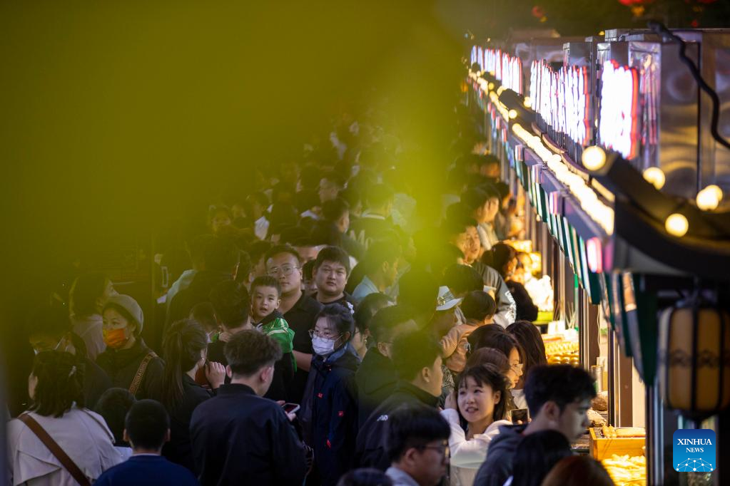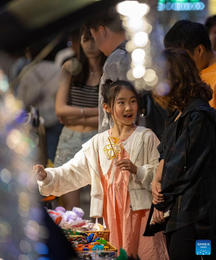 Tourists visit Huaiyuan night market in Xixia District of Yinchuan, northwest China's Ningxia Hui Autonomous Region, May 1, 2023. Yinchuan has been making efforts to bolster its nighttime economy in recent years. (Xinhua/Yang Zhisen)