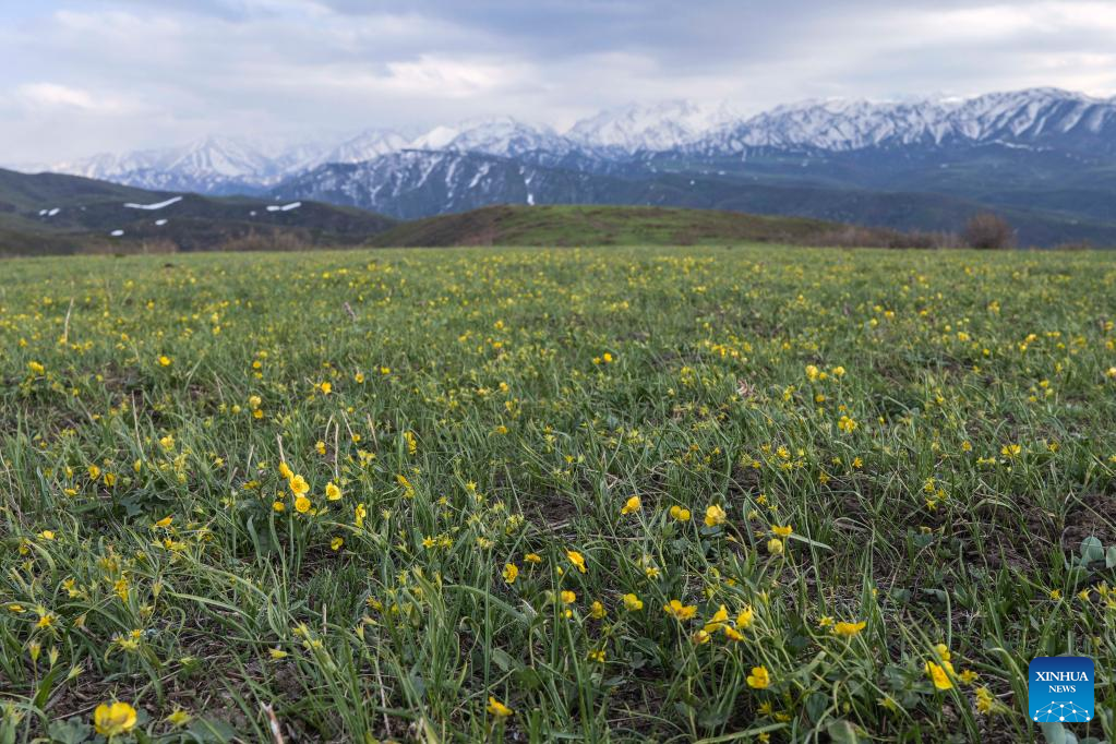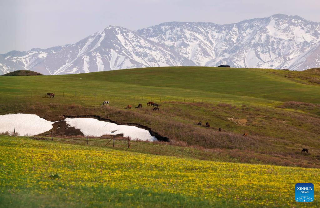 This photo taken on April 29, 2023 shows a prairie in the Barlik Mountain area in Yumin County, northwest China's Xinjiang Uygur Autonomous Region. (Photo by Zhang Du/Xinhua)