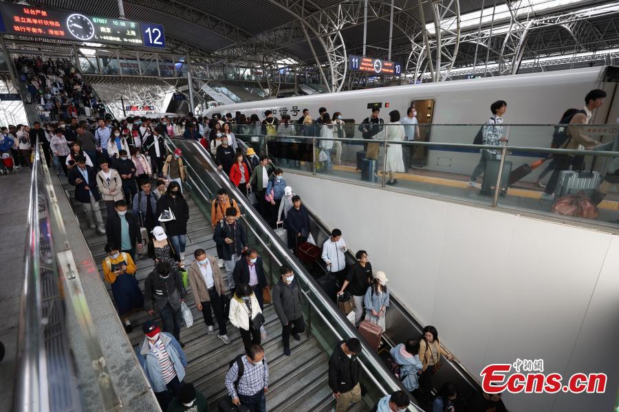 Passengers arrive at Nanjing Railway Station in Nanjing, east China's Jiangsu Province, May 3, 2023. (Photo: China News Service/Yang Bo)