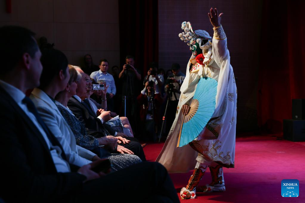 People watch a performance during an opening ceremony of Yaji Cultural Salon "Tea for Harmony" at China Cultural Center in Brussels, Belgium, on May 4, 2023. (Xinhua/Zheng Huansong)