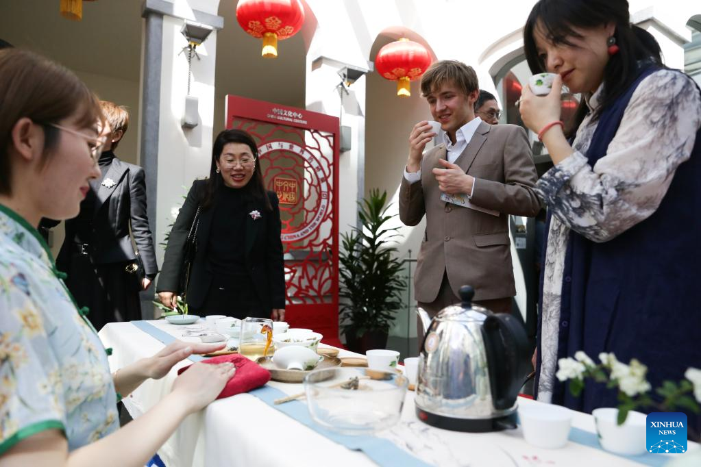 BRUSSELS, May 4 (Xinhua) -- A cultural salon focusing on traditional Chinese tea making techniques and social practices will open to the public on Friday after an opening ceremony held Thursday at the China Cultural Center in Brussels.