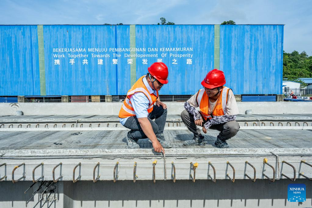 KUALA LUMPUR, May 4 (Xinhua) -- Under the scorching sun in Malaysia, the construction work of the East Coast Rail Link (ECRL), a major infrastructure project under the Belt and Road Initiative (BRI), was in full swing.
