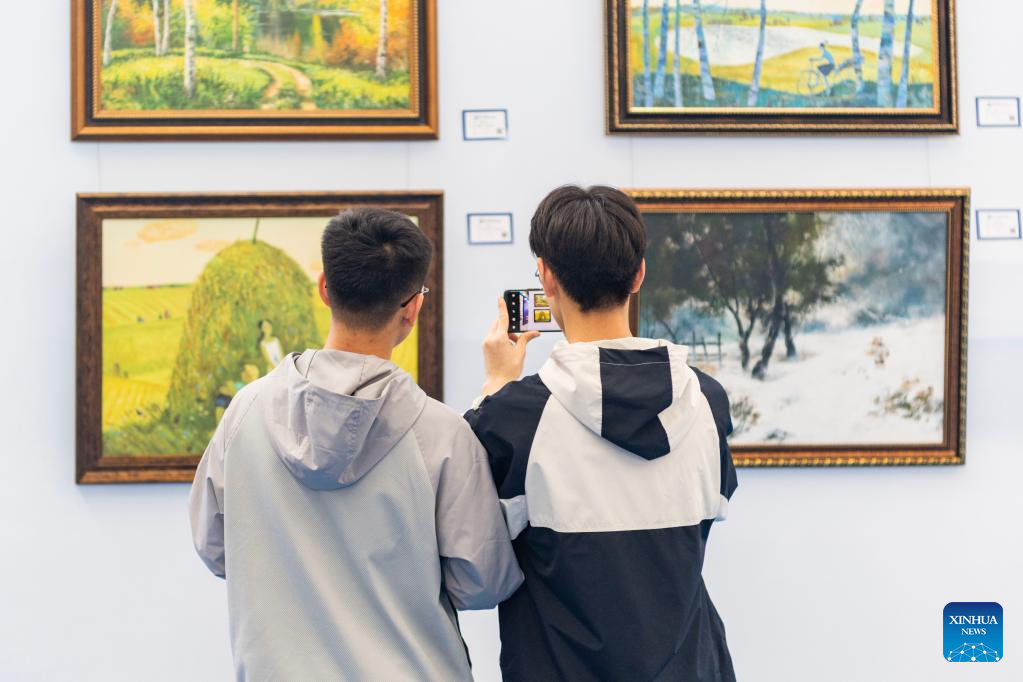 People take photos at the Northeast Asia Art & Design Expo in Harbin, northeast China's Heilongjiang Province, May 7, 2023. The Northeast Asia Art & Design Expo kicked off here on Sunday and will last till May 10. (Xinhua/Xie Jianfei)