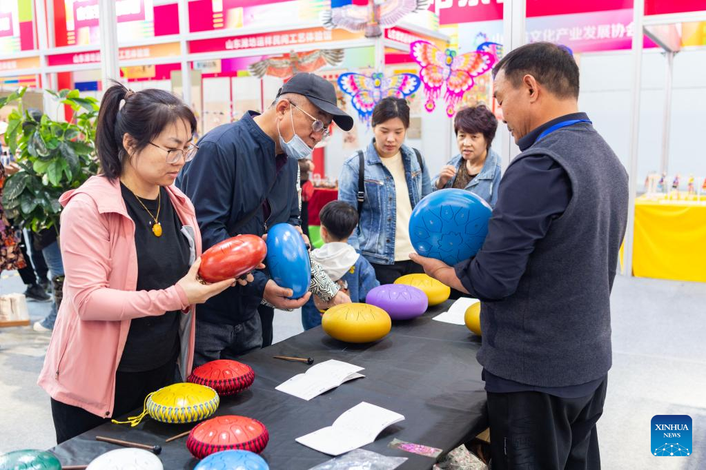 People buy products at the Northeast Asia Art & Design Expo in Harbin, northeast China's Heilongjiang Province, May 7, 2023. The Northeast Asia Art & Design Expo kicked off here on Sunday and will last till May 10. (Xinhua/Xie Jianfei)