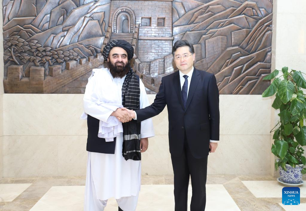 While meeting with Amir Khan Muttaqi, acting foreign minister of the Afghan interim government in the Pakistani capital, Qin said China and Afghanistan are traditionally friendly neighbors connected by mountains and rivers.