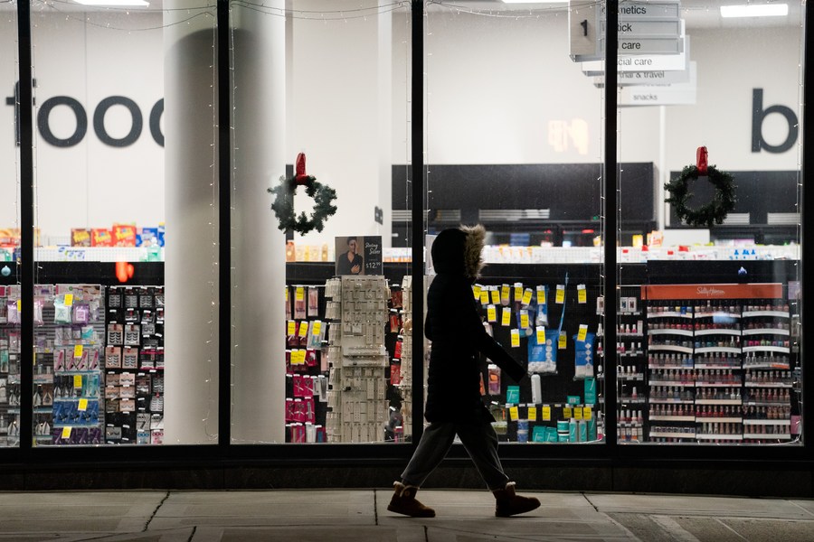 A woman walks past a retail store in Arlington, Virginia, the United States, Jan. 18, 2023. U.S. retail sales in December fell to their lowest level in a year, weighed down by decreasing auto sales and many other products. (Xinhua/Liu Jie)