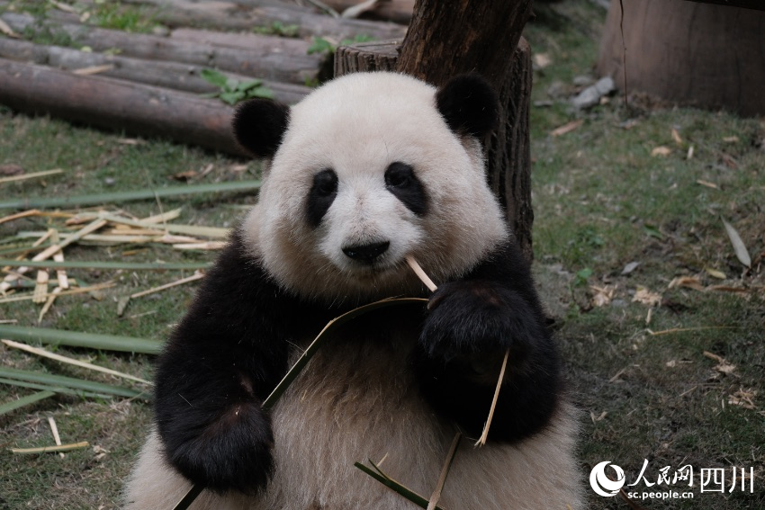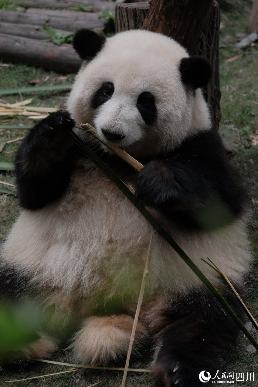 Giant panda He Hua eats bamboo at the Chengdu Research Base of Giant Panda Breeding in Chengdu, capital of southwest China's Sichuan Province. (Photo courtesy of the Chengdu Research Base of Giant Panda Breeding)