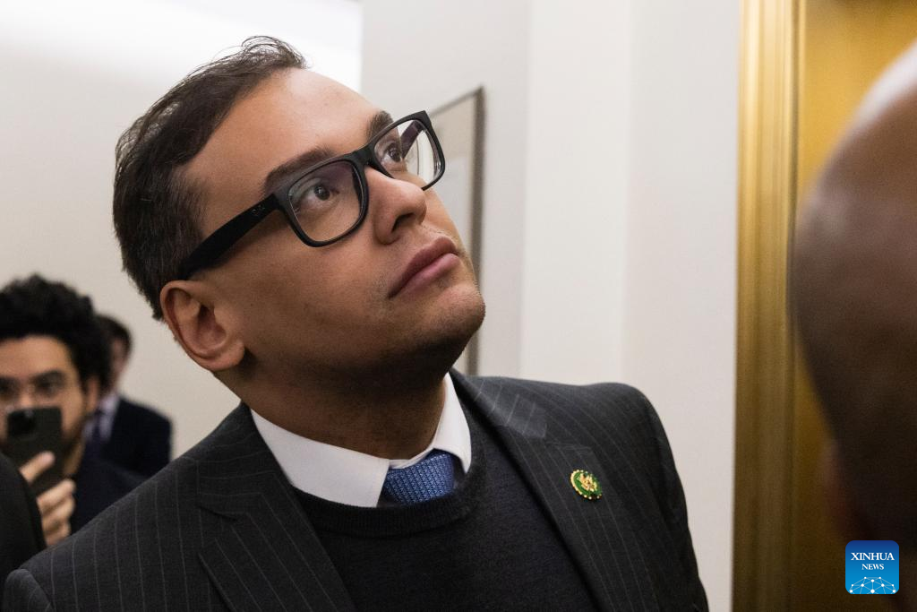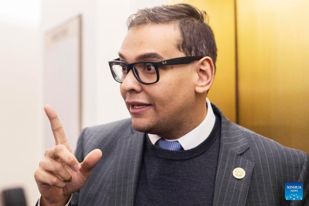 This photo taken on Jan. 25, 2023 shows U.S. Congressman George Santos on Capitol Hill in Washington, D.C., the United States. U.S. federal prosecutors have reportedly filed criminal charges against Congressman George Santos. (Photo by Aaron Schwartz/Xinhua)
