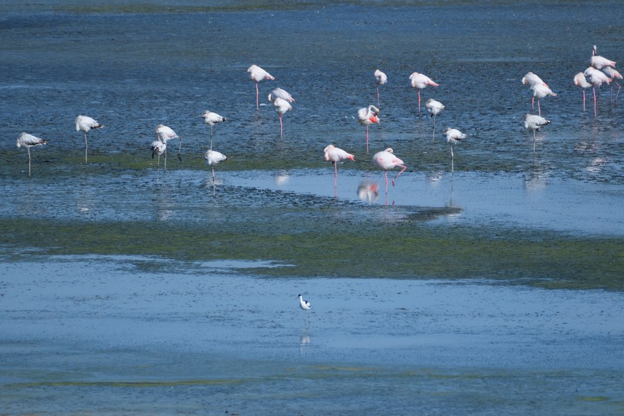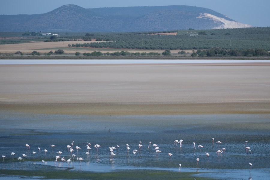 Flamingos are seen in Laguna de Fuente de Piedra, Spain, May 8, 2023. (Xinhua/Meng Dingbo)