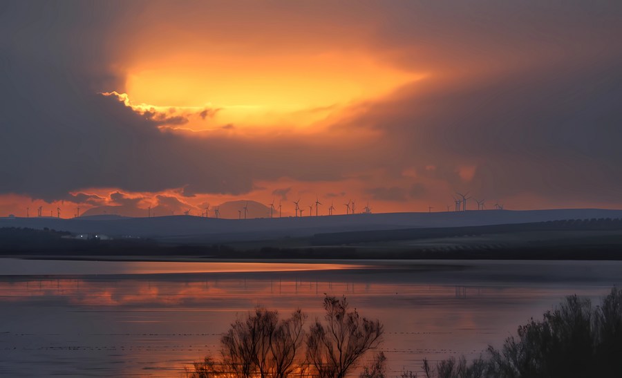 This undated file photo shows a sunset view of Laguna de Fuente de Piedra in Spain, (Photo by Carmen Planas/Xinhua)