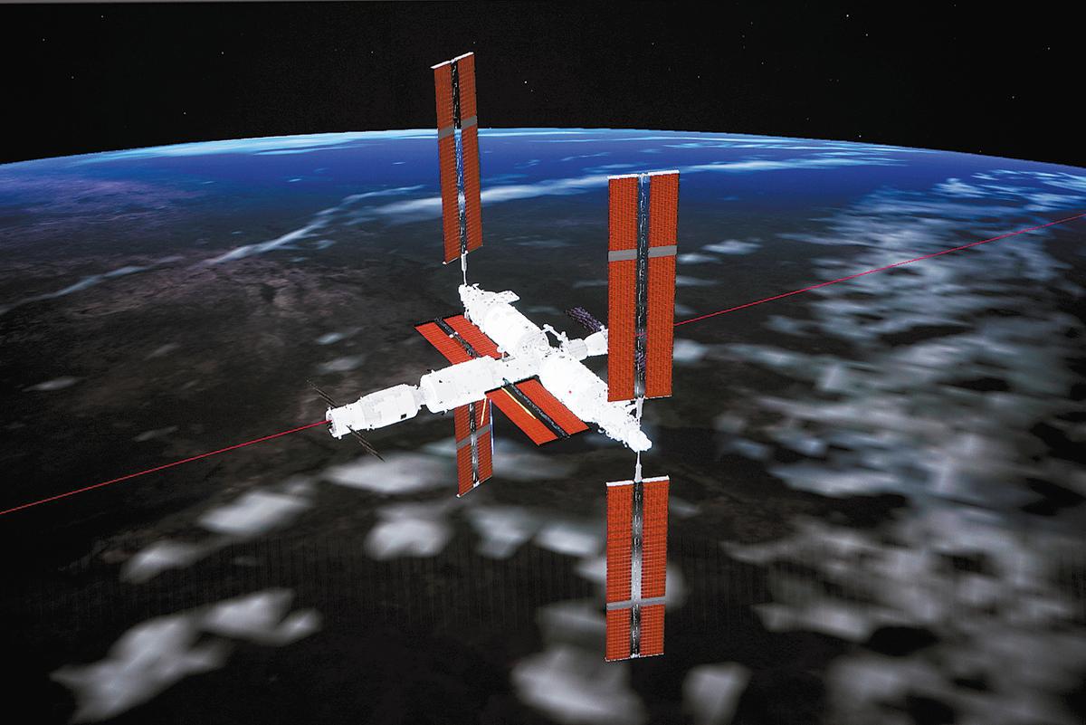 A simulated image from the control center shows the Tiangong space station after the Tianzhou 6 cargo craft docked. [Photo/Xinhua]