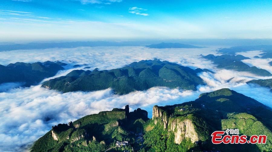 Cloud 'tides' fill Enshi Grand Canyon in Hubei