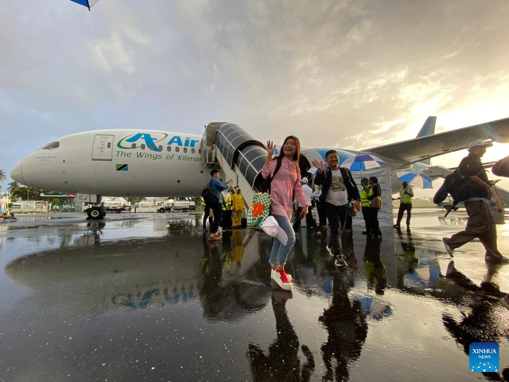 Delegates from Chinese tour operators and media houses arrive at an airport in Tanzania's Zanzibar on May 12, 2023. (Photo by Nurdin Pallangyo/Xinhua)