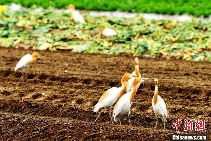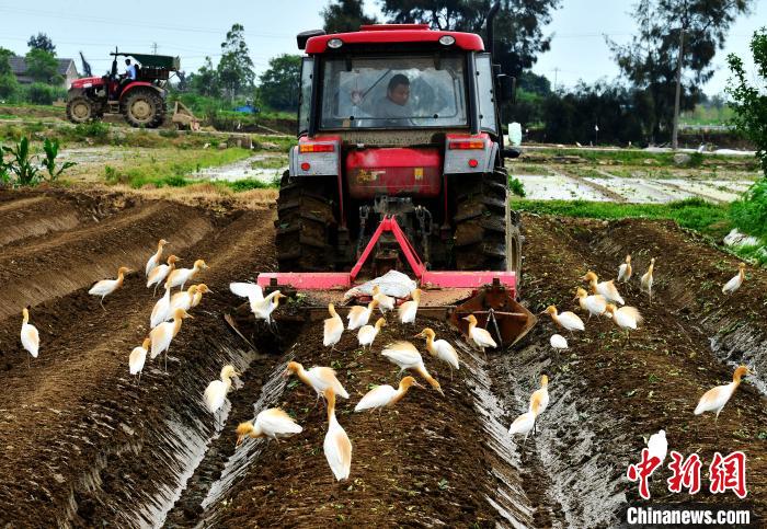 Egrets were seen playing and looking for food near farming machines which were working in fields in Tantou township, Changle district, Fuzhou city, southeast China's Fujian Province, on May 11. Egrets are regular visitors of Fuzhou as the local ecological environment has continuously improved in recent years.