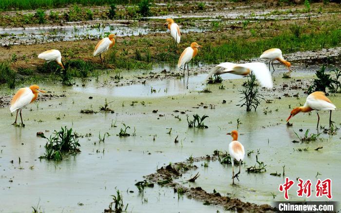 - Flock of egrets seen forgaging in paddy fields in E China's Jiangxi