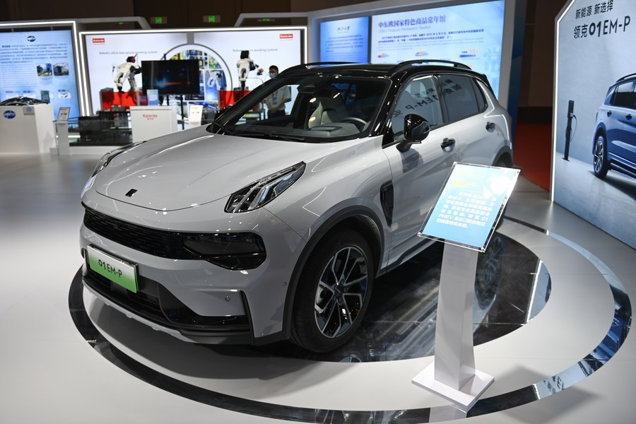 A vehicle of Lynk & Co brand exported to Europe is displayed at the China-Central & Eastern European Countries (CEEC) Expo in Ningbo, east China's Zhejiang Province, May 16, 2023. (Xinhua/Huang Zongzhi)