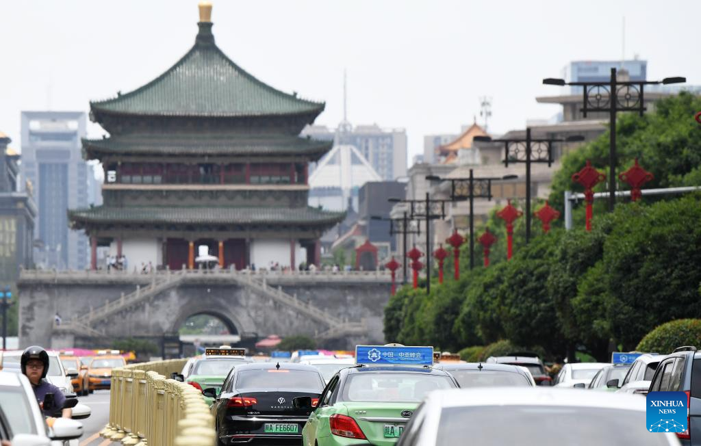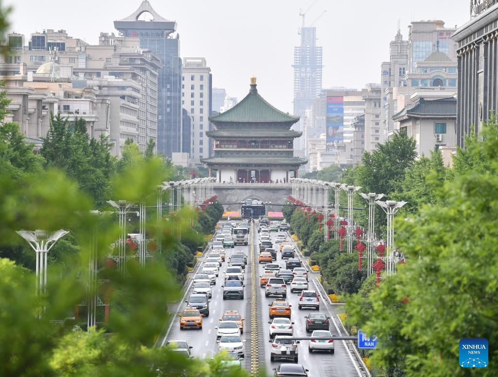This photo taken on May 16, 2023 shows a view of the Bell Tower in Xi'an, northwest China's Shaanxi Province. The China-Central Asia Summit is set to take place in Xi'an, the capital city of China's Shaanxi Province, on May 18 and 19. (Xinhua/Li Yibo)