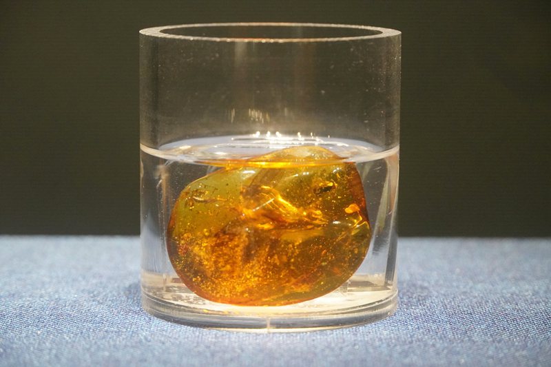 Photo shows an amber fossil from Mexico on display at the Guangdong Museum in Guangzhou city, south China's Guangdong Province. (Photo/Wang Yadie)