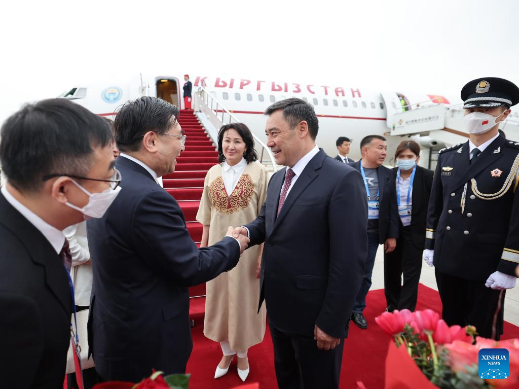 XI'AN, May 17 (Xinhua) -- Kyrgyz President Sadyr Japarov arrived in Xi'an, northwest China's Shaanxi Province, late Wednesday afternoon for the China-Central Asia Summit, which is scheduled for May 18 and 19.