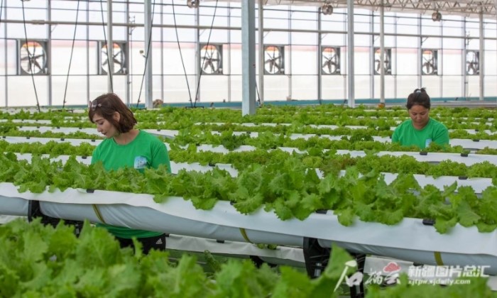 Employees of Xinjiang Chenrun Agricultural Technology Development Co., Ltd. check the growth of vegetables. (Photo courtesy of Xinjiang Chenrun Agricultural Technology Development Co., Ltd.)