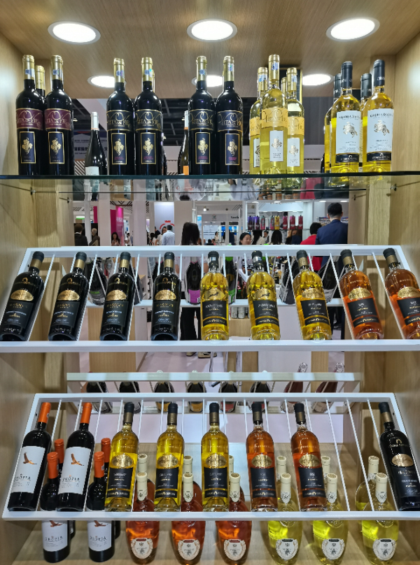 This photo taken on May 16, 2023 shows Romanian wines on display at the China-Central & Eastern European Countries (CEEC) Expo in Ningbo, east China's Zhejiang Province. Distinctive commodities from Central and Eastern European countries, especially agricultural food, wines, and dairy products, have drawn wide attention at the expo. (Xinhuanet/Zhang Qian)