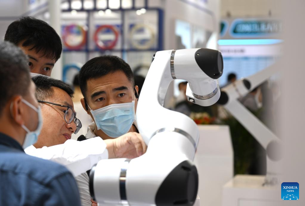 People visit an intelligent technology exhibition during the seventh World Intelligence Congress (WIC) in north China's Tianjin, May 18, 2023. The seventh WIC, a major AI event in China, kicked off in the northern Tianjin Municipality on Thursday. (Xinhua/Zhao Zishuo)