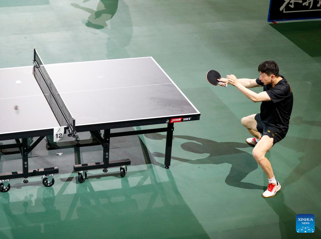 Ma Long of China attends a training session for the 2023 ITTF Table Tennis World Championships Finals in Durban, South Africa, May 18, 2023. (Xinhua/Zhang Yudong)