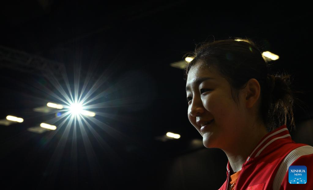 Chen Meng of China is seen during a training session for the 2023 ITTF Table Tennis World Championships Finals in Durban, South Africa, May 18, 2023. (Xinhua/Tao Xiyi)