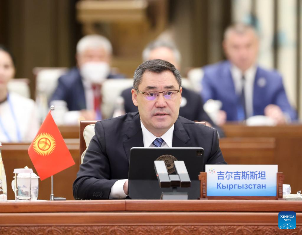 Kyrgyz President Sadyr Japarov speaks during the first China-Central Asia Summit in Xi'an, northwest China's Shaanxi Province, May 19, 2023. The first China-Central Asia Summit was successfully concluded here Friday. (Xinhua/Ding Haitao)