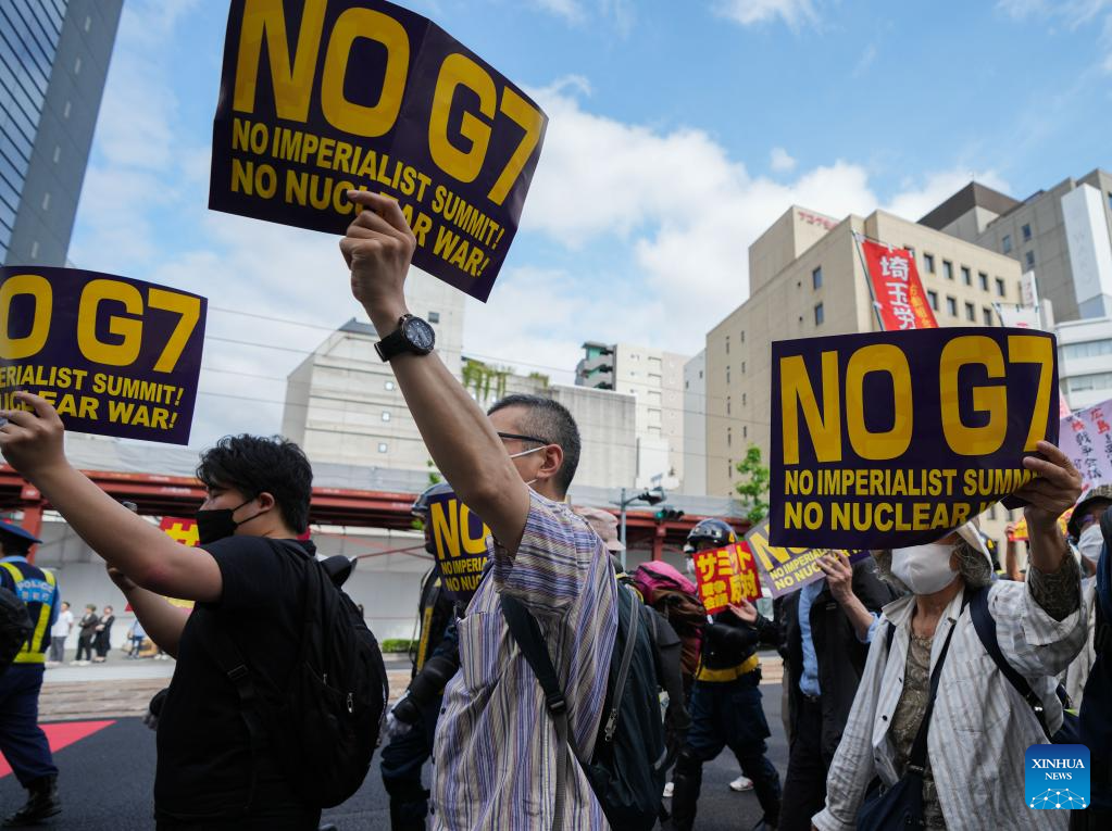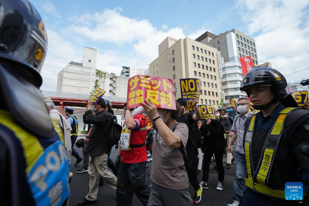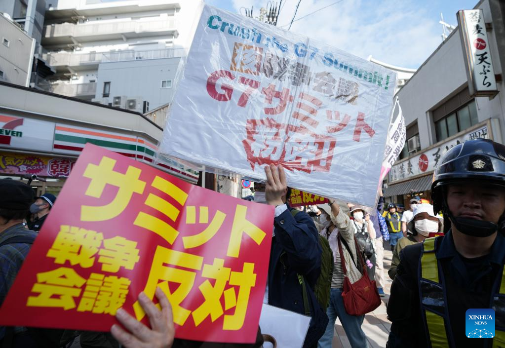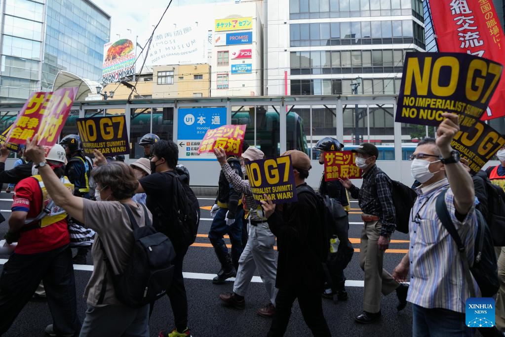 People rally in a protest against the Group of Seven (G7) summit in Hiroshima, Japan, May 20, 2023. (Xinhua/Zhang Xiaoyu)