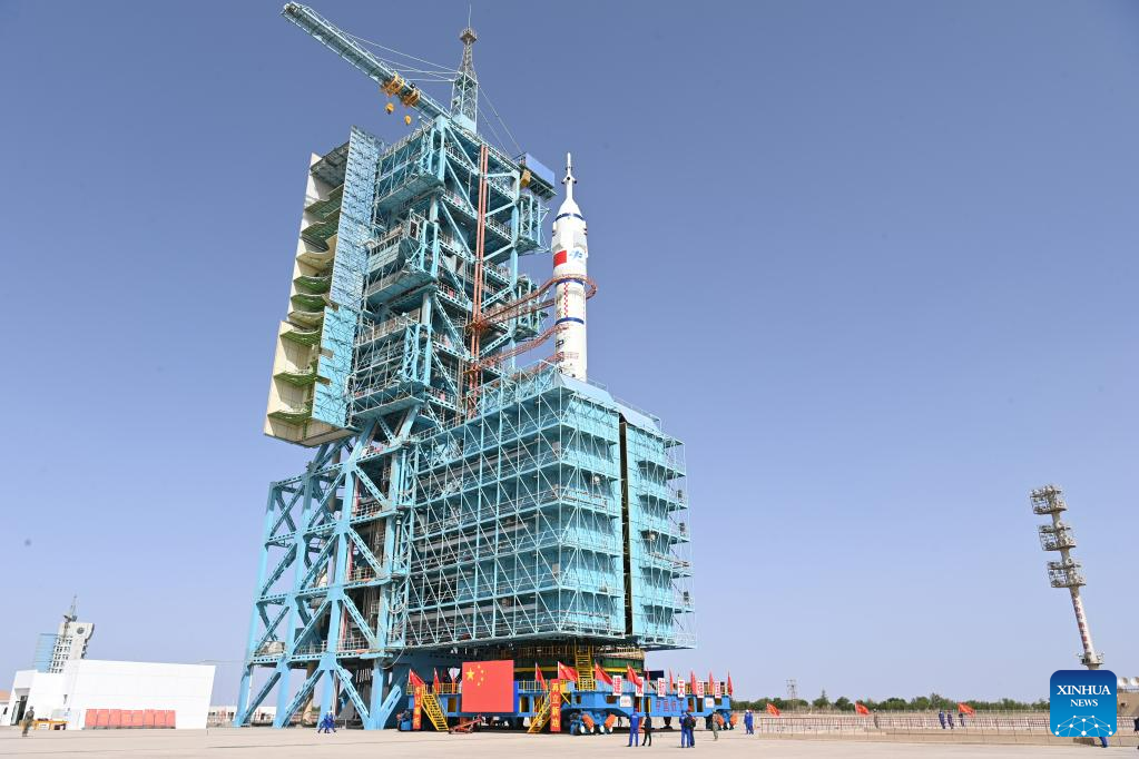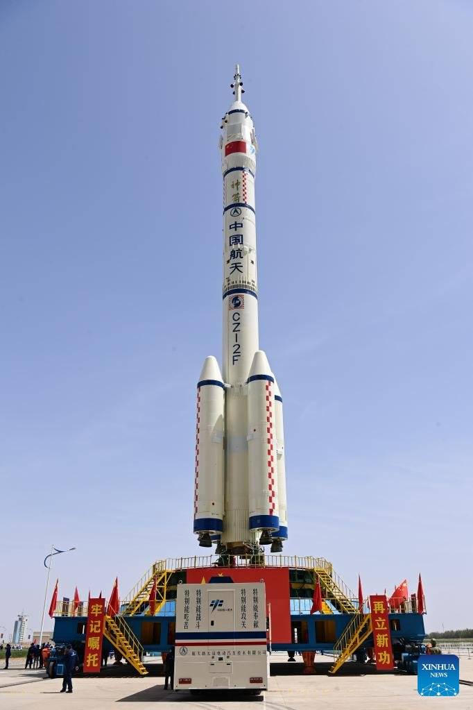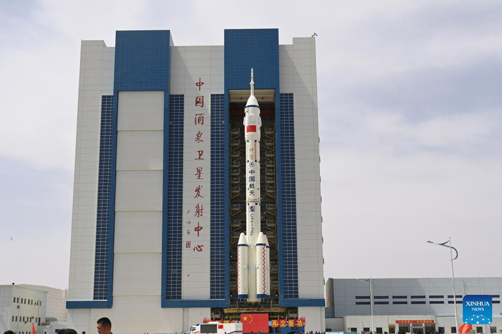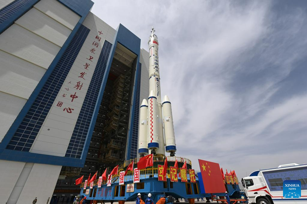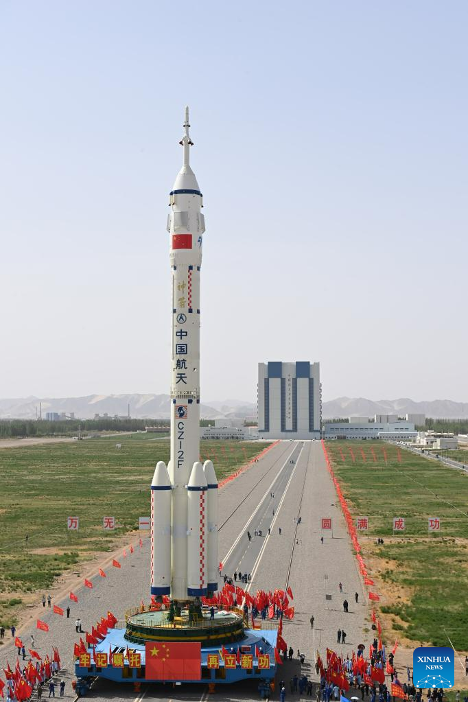 JIUQUAN, May 22 (Xinhua) -- The combination of the Shenzhou-16 crewed spaceship and a Long March-2F carrier rocket was transferred to the launching area on Monday, the China Manned Space Agency (CMSA) said.