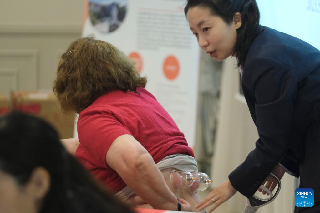 Florella Law, 77, is an enthusiast of TCM and has frequented the MRCTCM since its establishment in 1994. While receiving cupping therapy for back pain, she said she was fond of and appreciated TCM treatments. She told Xinhua that TCM has significantly reduced her pain.