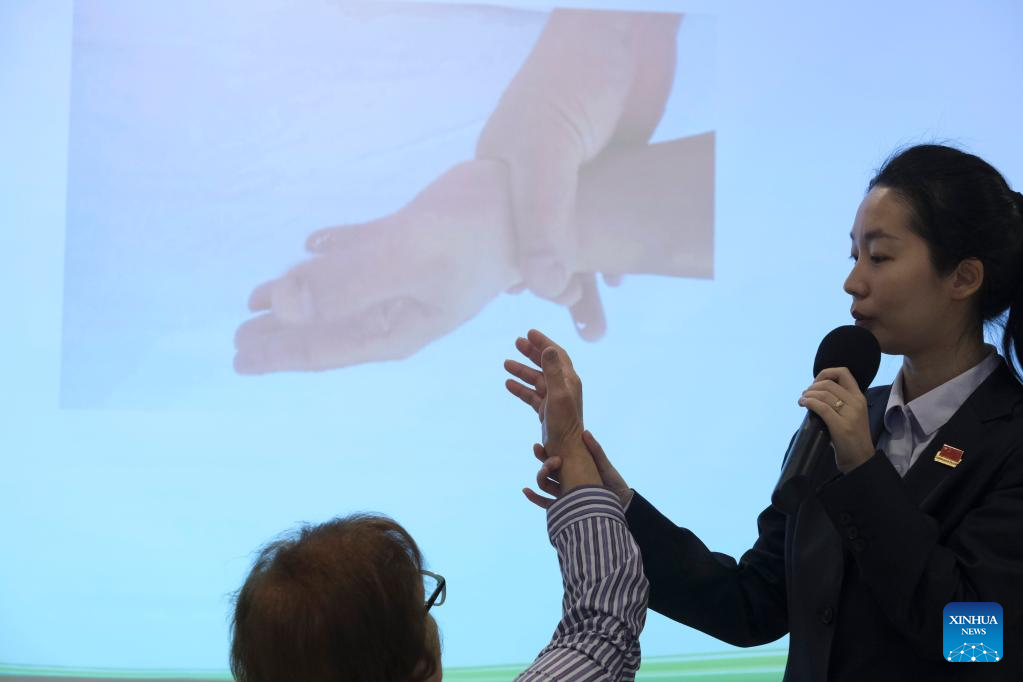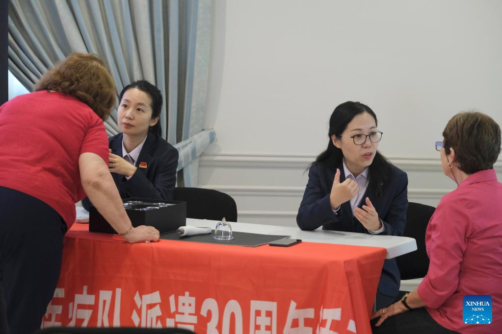 Following a brief lecture on traditional Chinese medicine (TCM) treatment of insomnia given by Shi Xinying, member of the medical team, four doctors offered complimentary services, such as health consultations, blood pressure checks, acupuncture and cupping therapy.