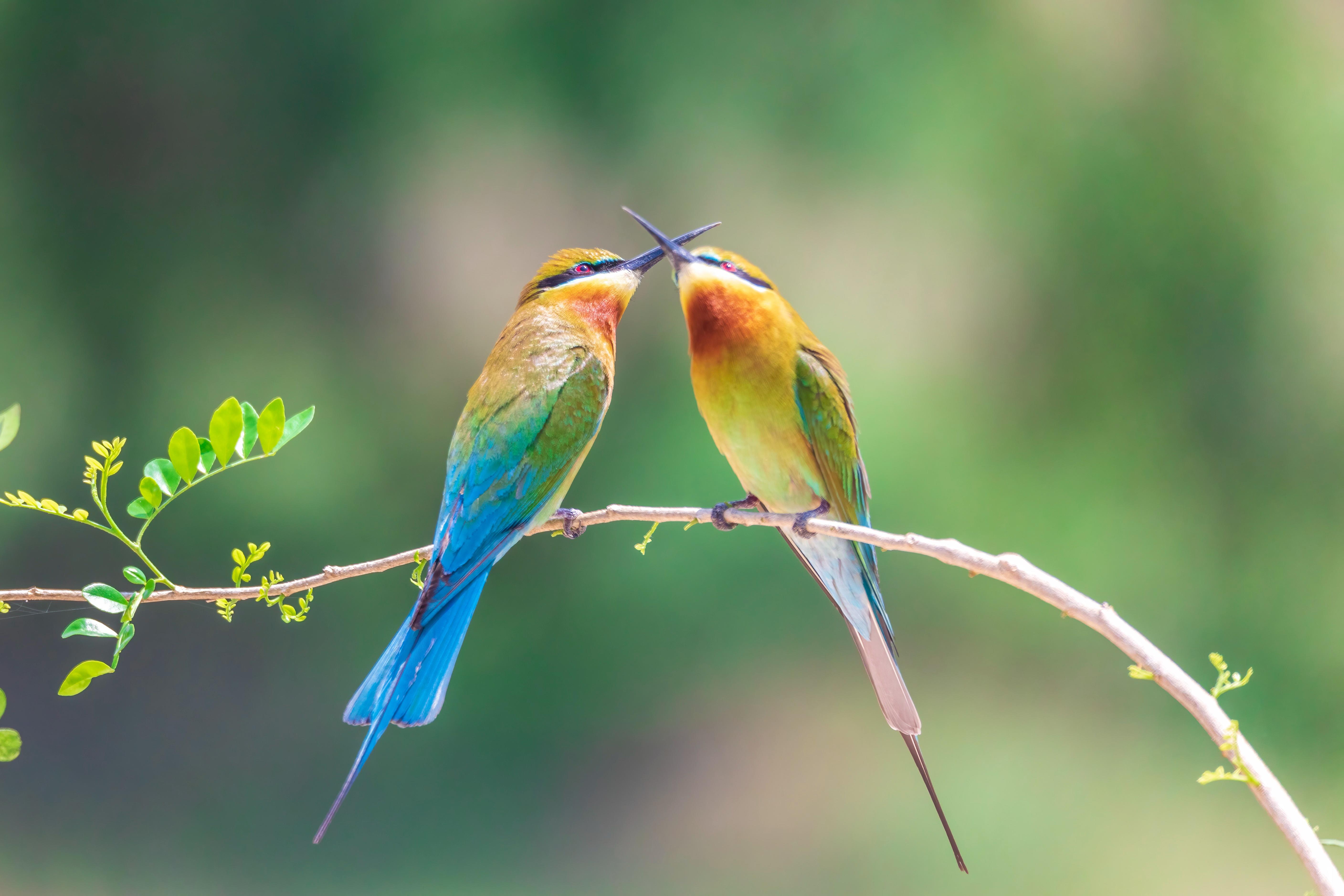 Photo shows two blue-tailed bee-eaters at a scenic spot in Caotan township, suixi county, Zhanjiang, south China’s Guangdong Province. (Photo/Lan Weiqiang)