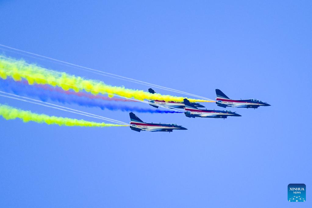 The Chinese People's Liberation Army (PLA) Air Force's August 1st aerobatics team performs at the 16th Langkawi International Maritime and Aerospace Exhibition (LIMA 2023) in Langkawi, Malaysia, May 23, 2023. (Xinhua/Zhu Wei)