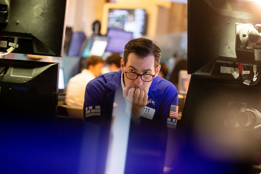 A trader works on the trading floor of the New York Stock Exchange (NYSE) in New York, the United States, on May 24, 2023. (Photo by Michael Nagle/Xinhua)