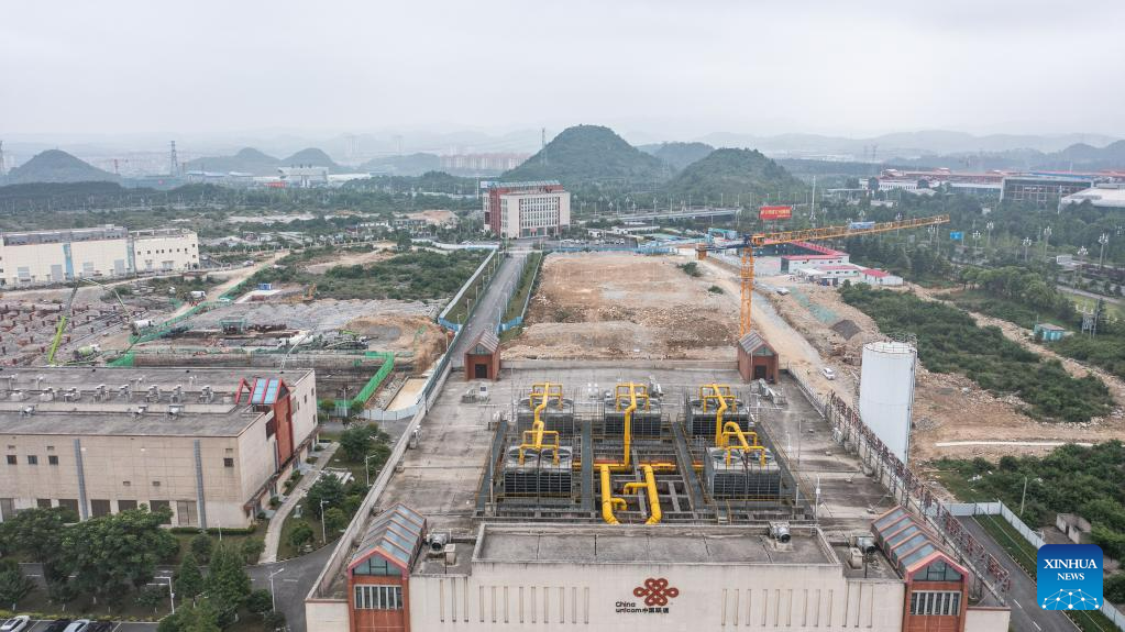 This aerial photo taken on May 23, 2023 shows the Guian data center of China Unicom in Guian New Area, southwest China's Guizhou Province. In February 2022, China started work on the project to build an integrated national big data system involving the establishment of eight national computing hubs and 10 national data center clusters. Guizhou is one of the eight hubs and construction of many data center projects are in full swing. (Xinhua/Tao Liang)
