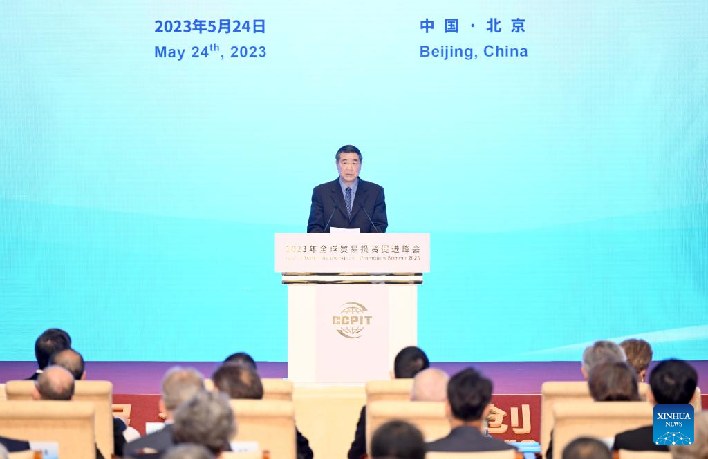 Chinese Vice Premier He Lifeng, also a member of the Political Bureau of the Communist Party of China Central Committee, addresses the opening ceremony of the Global Trade and Investment Promotion Summit of 2023 in Beijing, capital of China, May 24, 2023. (Xinhua/Yue Yuewei)