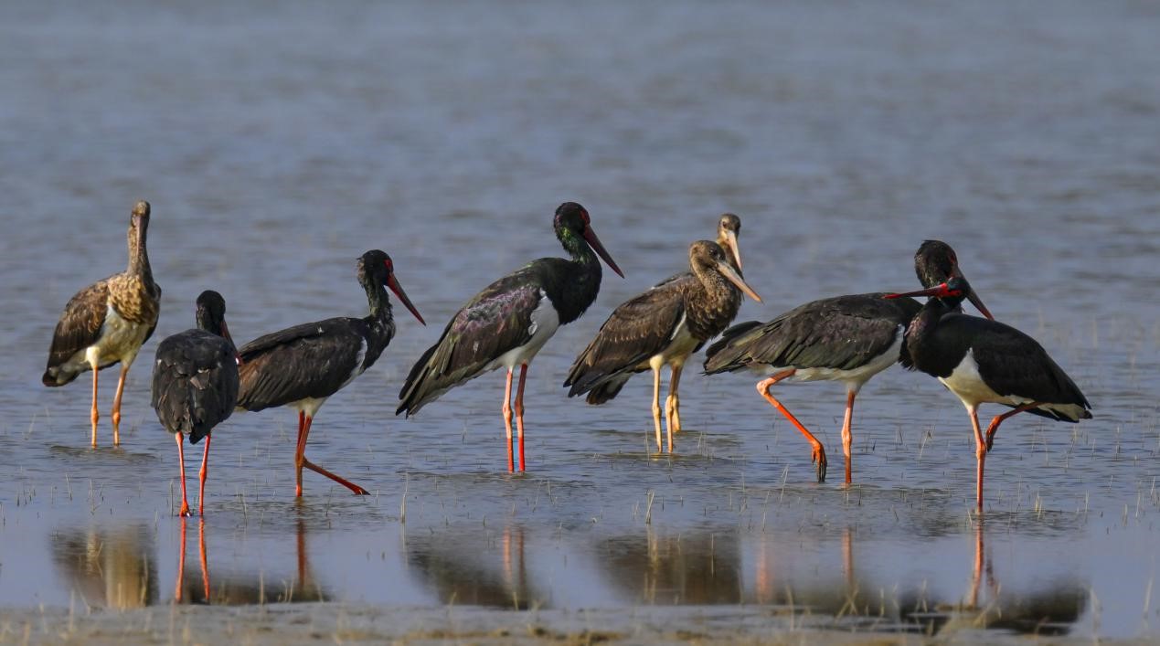 Photo shows black storks, a rare bird species, in Mengzi city, Honghe Hani and Yi autonomous prefecture, southwest China's Yunnan province, Feb. 18, 2023. (People's Daily Online/Lu Zhong)