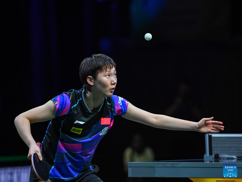 Wang Manyu of China serves during the women's singles round of 16 match against Nina Mittelham of Germany at 2023 ITTF Table Tennis World Championships Finals in Durban, South Africa, May 25, 2023. (Xinhua/Li Yahui)