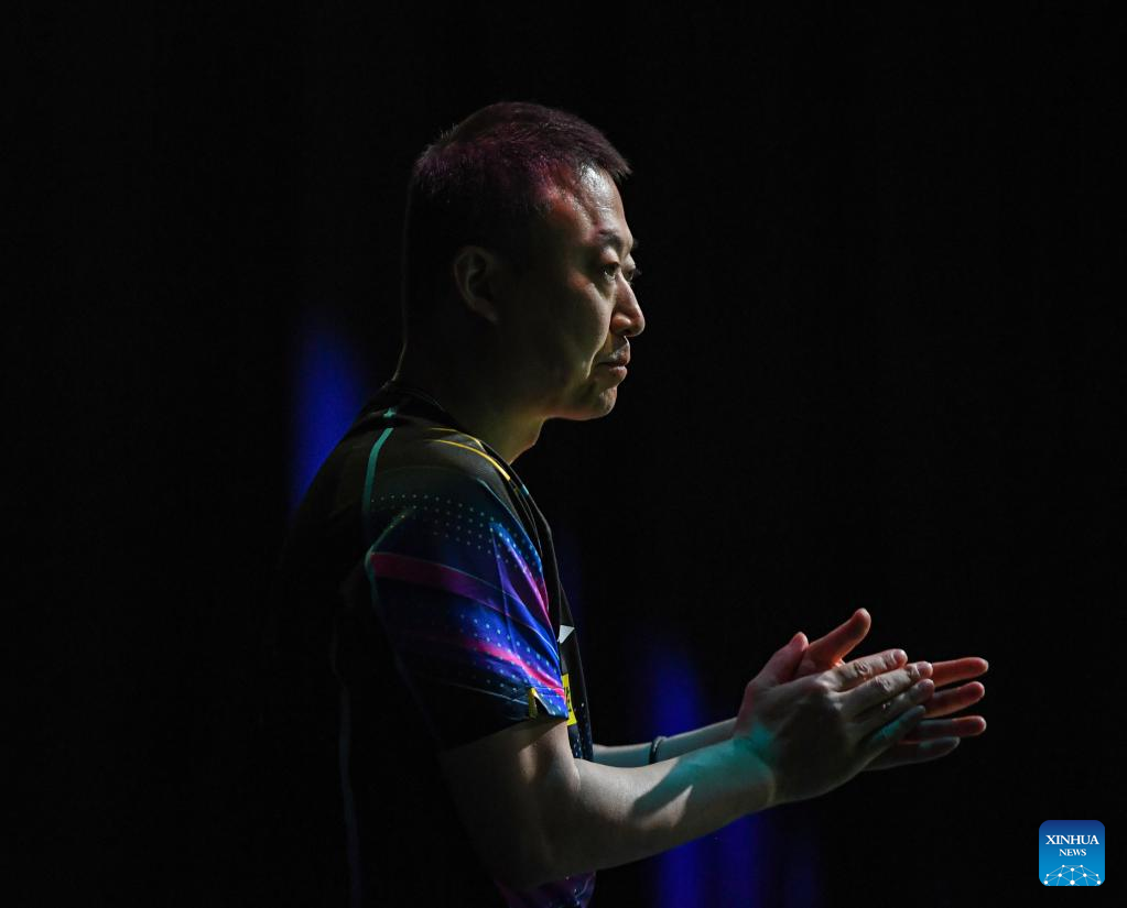 Coach Ma Lin applauds for Wang Manyu of China during her women's singles round of 16 match against Nina Mittelham of Germany at 2023 ITTF Table Tennis World Championships Finals in Durban, South Africa, May 25, 2023. (Xinhua/Li Yahui)