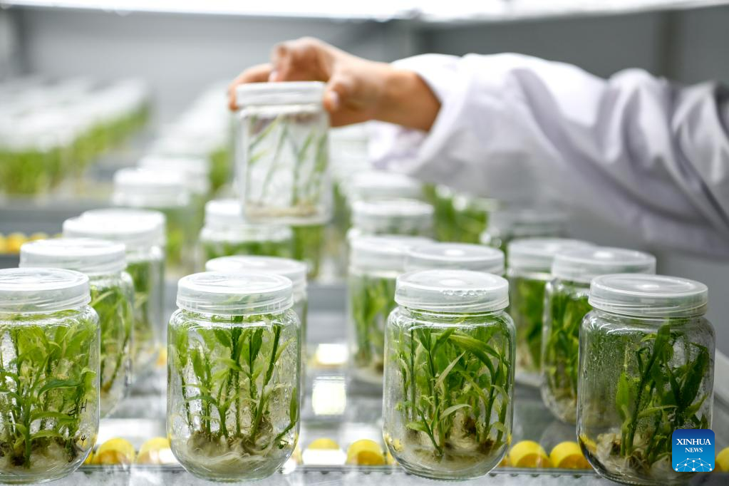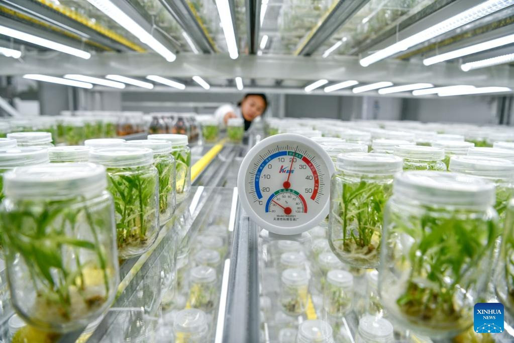 A worker checks the growth condition of seedlings at a seedling greenhouse in Kaiyang County of Guiyang, southwest China's Guizhou Province, May 23, 2023. In recent years, relying on the development of big data, Guizhou Province has accelerated the promotion and application of new models of smart agriculture, so as to improve agricultural production efficiency. (Xinhua/Yang Wenbin)